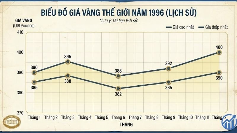 Biểu đồ giá vàng thế giới năm 1996 cho thấy: