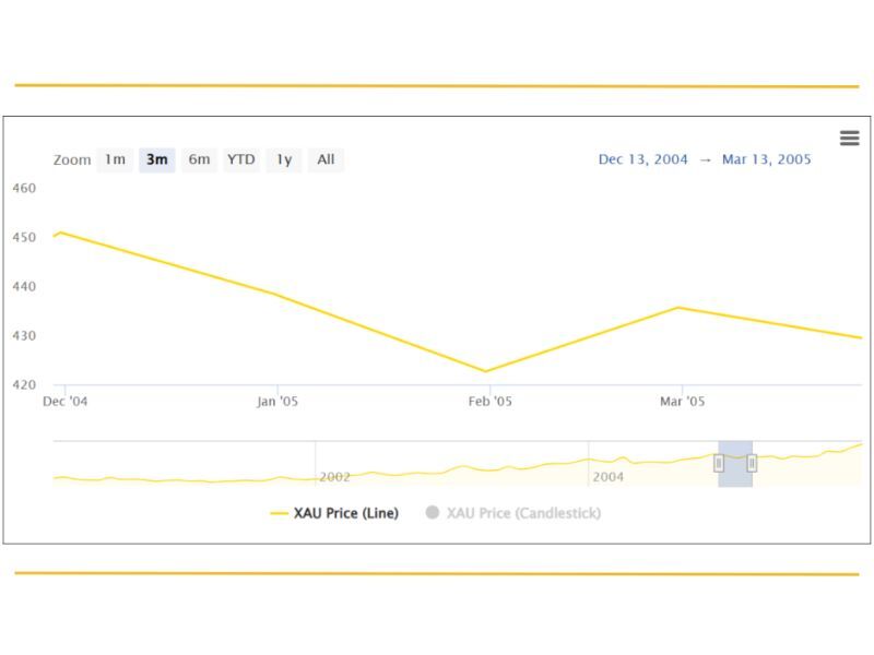 Biểu đồ xu hướng giá vàng năm 2005