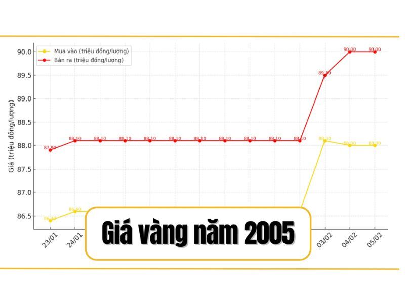 Nếu bạn đang tìm “giá vàng năm 2005 bao nhiêu” hoặc “giá vàng năm 2005 bao nhiêu tiền”, có thể tóm tắt nhanh theo dữ liệu tham khảo: