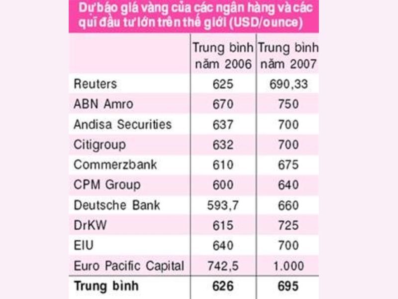 Nếu bạn quan tâm đến sự biến động giá vàng qua các năm, đừng bỏ lỡ bài viết Yếu Tố Quyết Định Đến Biến Động Giá Vàng để có cái nhìn tổng quan về giá vàng từ những năm đầu thế kỷ 21 đến nay. Bạn cũng có thể tham khảo thêm Giá vàng năm 2006, Giá vàng năm 2005 để nắm bắt các xu hướng và dự đoán của các chuyên gia tài chính về thị trường vàng trong thời gian tới.