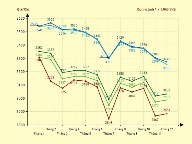 Vàng 9999 (24k): Như đã đề cập, giá vàng 9999 năm 2015 giao động từ 35 triệu đồng/lượng đến 37 triệu đồng/lượng, với biên độ giảm từ 6-7% so với năm 2014.