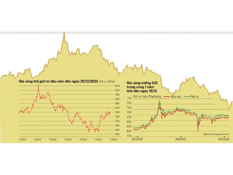 Tuy nhiên, đến cuối tháng 9, sau khi Cục Dự trữ Liên bang Mỹ (FED) tăng lãi suất để kiểm soát lạm phát, giá vàng giảm mạnh và chỉ còn 1.630 USD/ounce. Dù vậy, đến cuối năm, giá vàng thế giới đã phục hồi nhẹ và đóng cửa ở mức 1.815 USD/ounce, giảm 0.8% so với năm trước.
