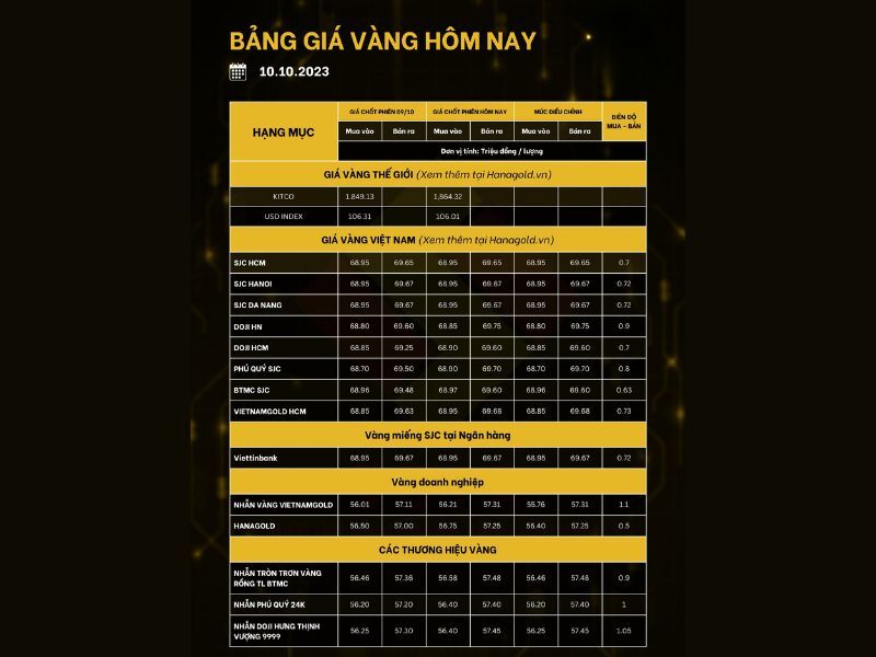 Giữa tháng 10: Vào giữa tháng 10/2023, giá vàng chính thức vượt qua ngưỡng 70 triệu đồng/lượng và duy trì đà tăng liên tục, với mức tăng gần 10 triệu đồng/lượng trong vòng hai tháng cuối năm.