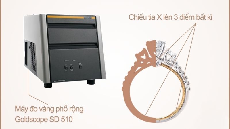 Đây là phương pháp hiện đại nhất. Máy đo sử dụng công nghệ tia X (XRF) để phân tích thành phần hóa học của kim loại mà không làm hư hại hay hao mòn vàng. Kết quả sẽ cho bạn biết chính xác đến từng % hàm lượng vàng, bạc, đồng, niken có trong mẫu.